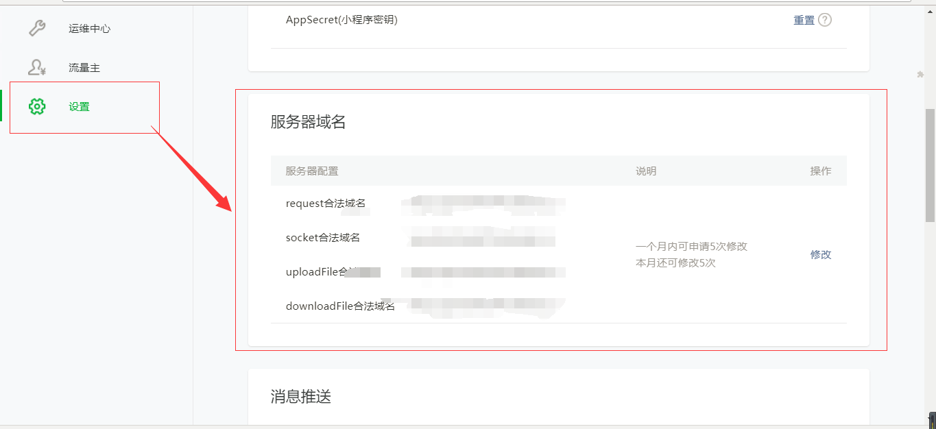 2.手机与小程序操作方式与PC版一致,这里不做赘述。(注:小程序中需要在微信公众平台的设置中绑定服务器域名),如图所示: